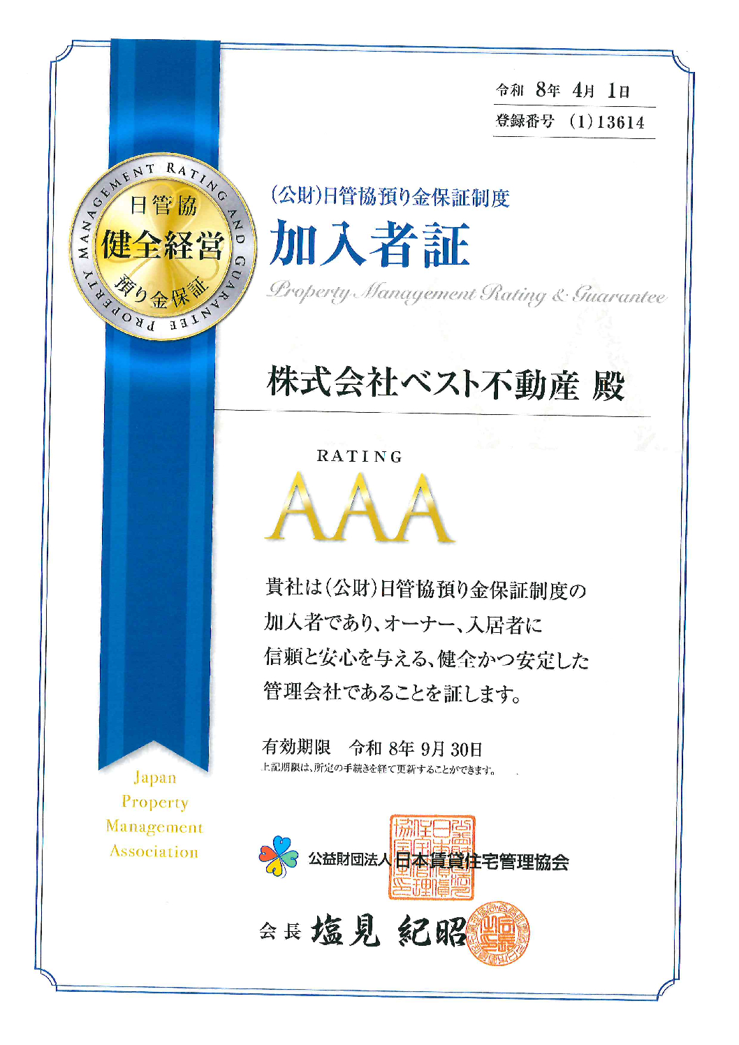 | 加盟団体 | 日本賃貸住宅管理協会 ※2026年4月預かり金保証制度 加入 福山法人会 |